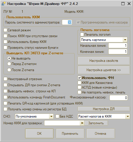 Форма настройки "Штрих-М: Драйвер ФР"