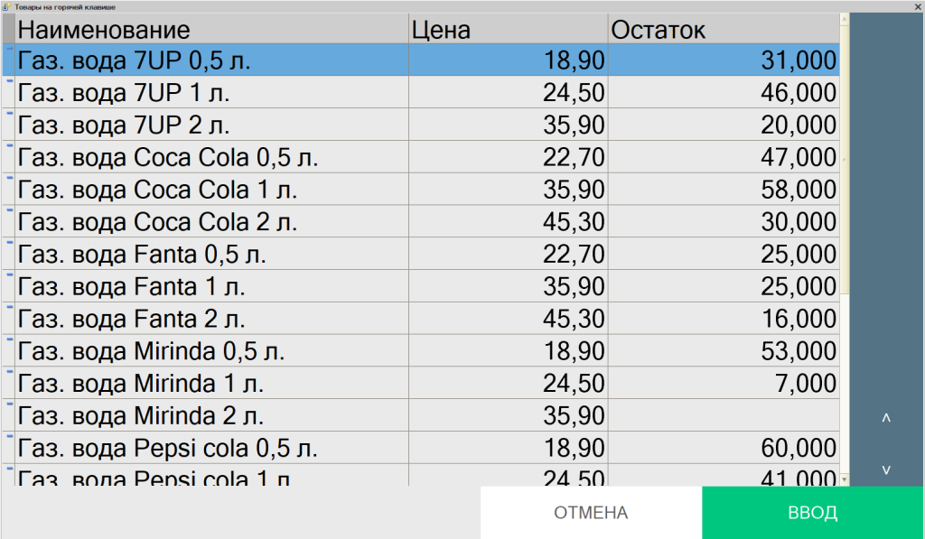 Выводит информацию по остатку на горячих клавишах. Список работает только при снятом флаге Размещать товары по горячим клавишам на кнопках.