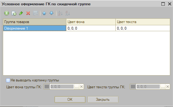 В данном разделе выбираются группы товаров и указываются для них настройки по фону и шрифту.