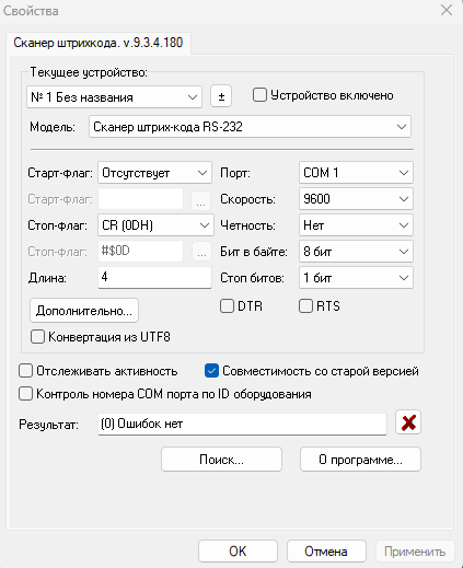 Настройка работы с драйвером сканера через Штрих-М: Драйвер сканера