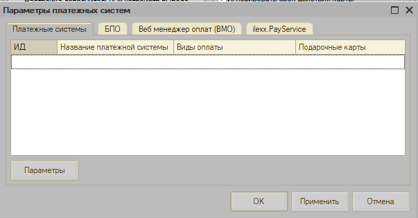 Закладка "Платежные системы"
