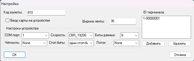 На банковском терминале используется несколько виртуальных устройств для возможности работы с разными юр. лицами. Для каждого юр. лица в терминале используется TID информации по которому в кассовой программе нет. Для реализации передачи данных из кассовой программы в банковский терминал настраиваются соответствия. Для настройки соответствий используется параметр ID терминала, в котором указывается номер организации ID виртуального терминала.