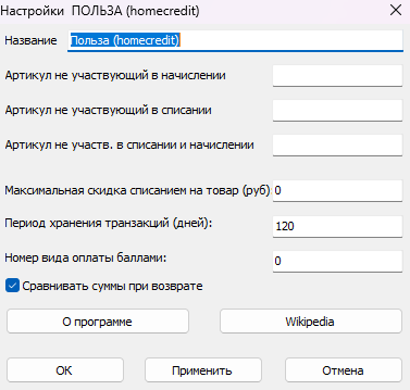 Кассовое ПО использует вид оплаты для оплаты оплаты баллами (предоставление скидки баллами). Номер этого вида оплаты передаётся в модуль. Для корректной работы модуля необходимо указать корректный номер.