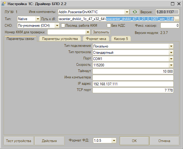 После указания всех данных для того, чтобы форма подгрузилась и можно было настроить работу с оборудованием, нажимаем на кнопку обновить