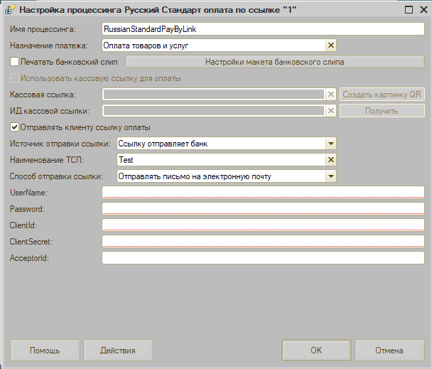 Задаются параметры работы процессинга. Данные для заполнения получаются от банка