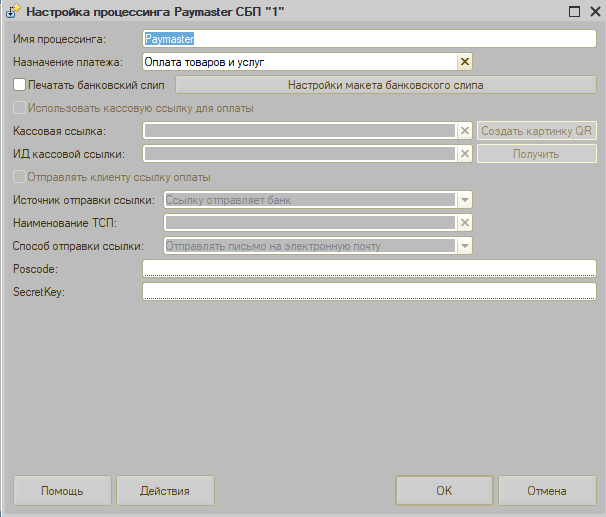 Задаются параметры работы процессинга. Данные для заполнения получаются от банка