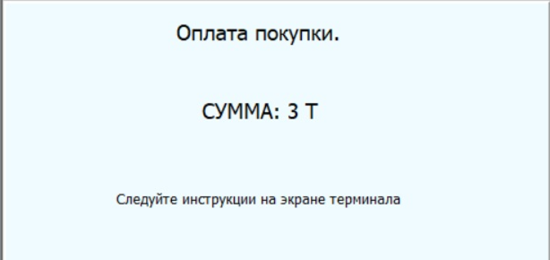 При выполнении оплаты выводится сообщение о ходе выполнения операции на терминале. Если при обращении к терминалу происходит допустимая ошибка, то выводится сообщение о ней с предложением повторить запрос, не прерываю операцию.