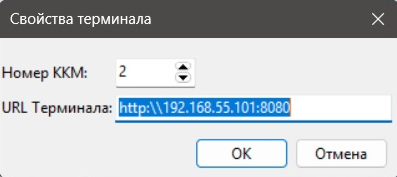 - поле для указания URL терминала - по указаному URL будут выполняться HTTP запросы к терминалу. АДрес обязательно должен включать указание протокола (http) и номера порта
