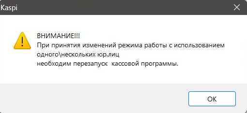 Внимание - после изменения порядка работы с юрлицами необходимо перезапустить кассовую программу.