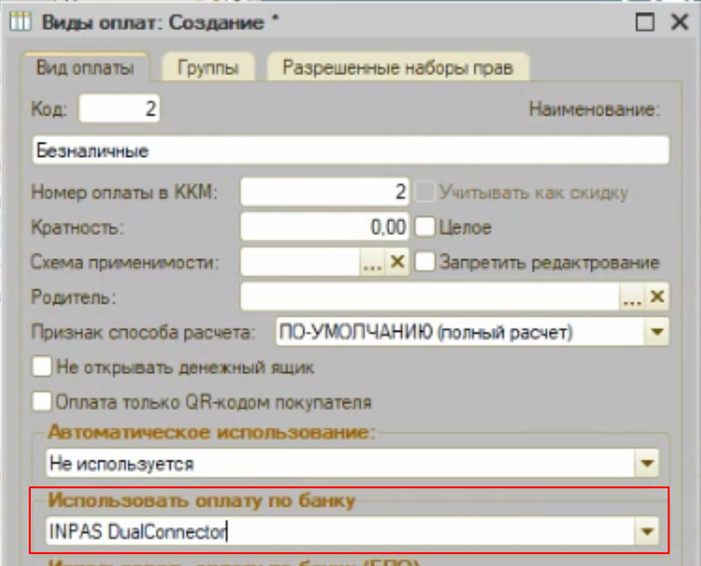 После необходимо привязать платежную систему к виду оплаты.