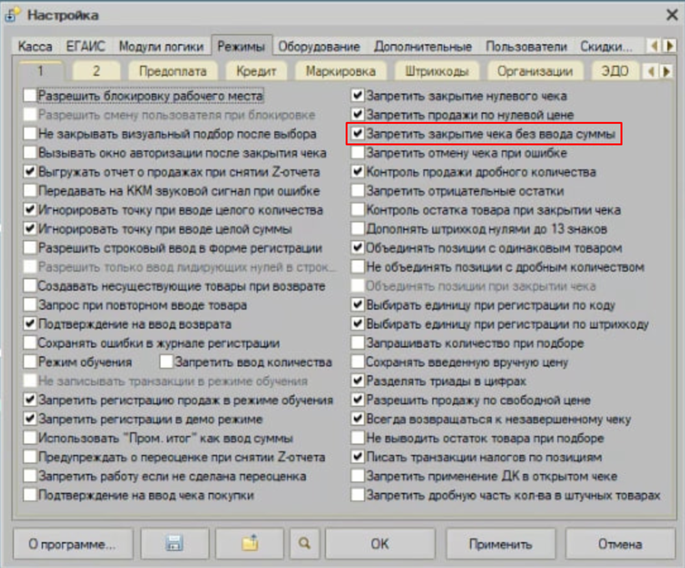 Для закрытия чеки с вводом суммы чека необходимо установить флаг "Запретить закрытие чека без ввода суммы" в "Настройках" - "Режимы" - "1"