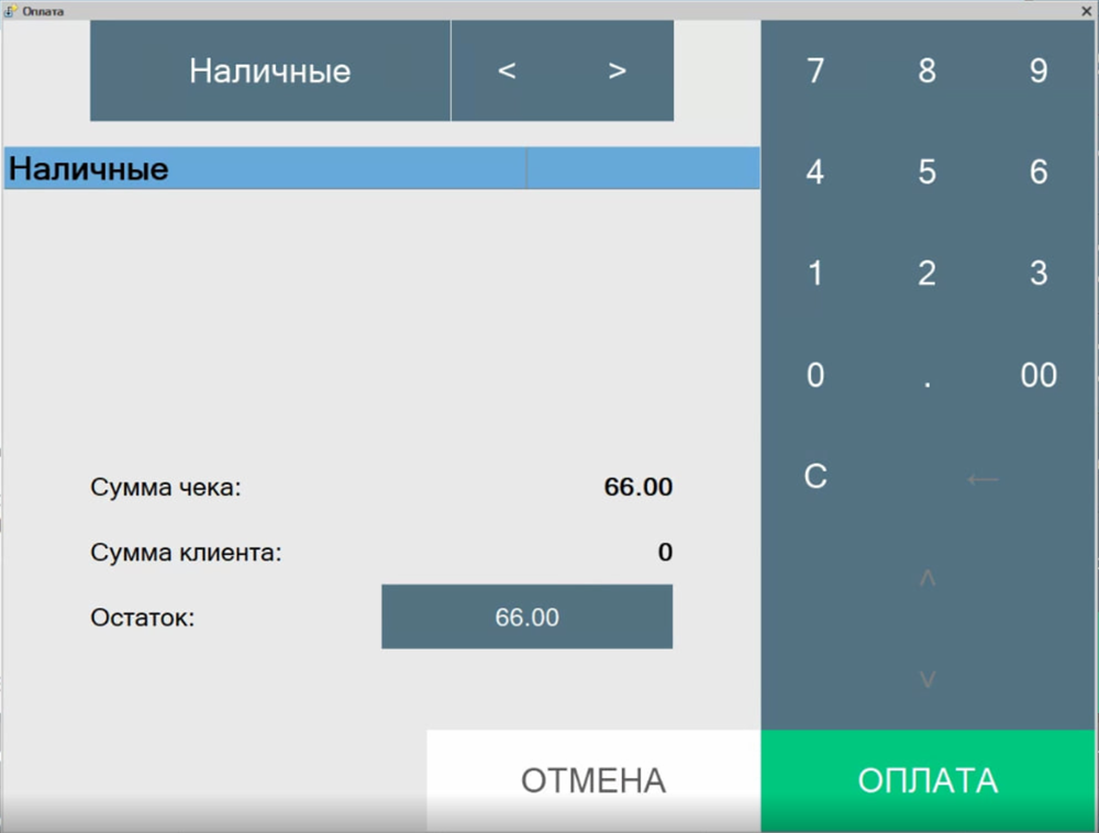 При продаже, после ввода суммы автоматически будет указана сумма сдачи.