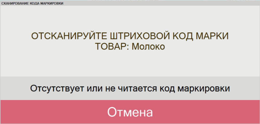 Для продажи маркируемого товара в режиме регистрации продаж можно осуществить подбор стандартным способом, где после подбора товара откроется форма, сообщающая о необходимости отсканировать код маркировки.