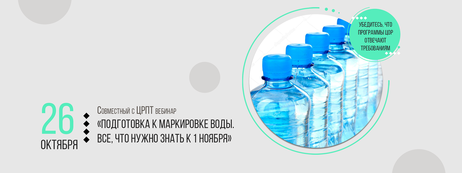 26 октября в 10:00 по Москве на площадке «Честного знака» состоится вебинар под эгидой ЦРПТ «Товарная группа «Вода». Подготовка к 1 ноября 2022 года».