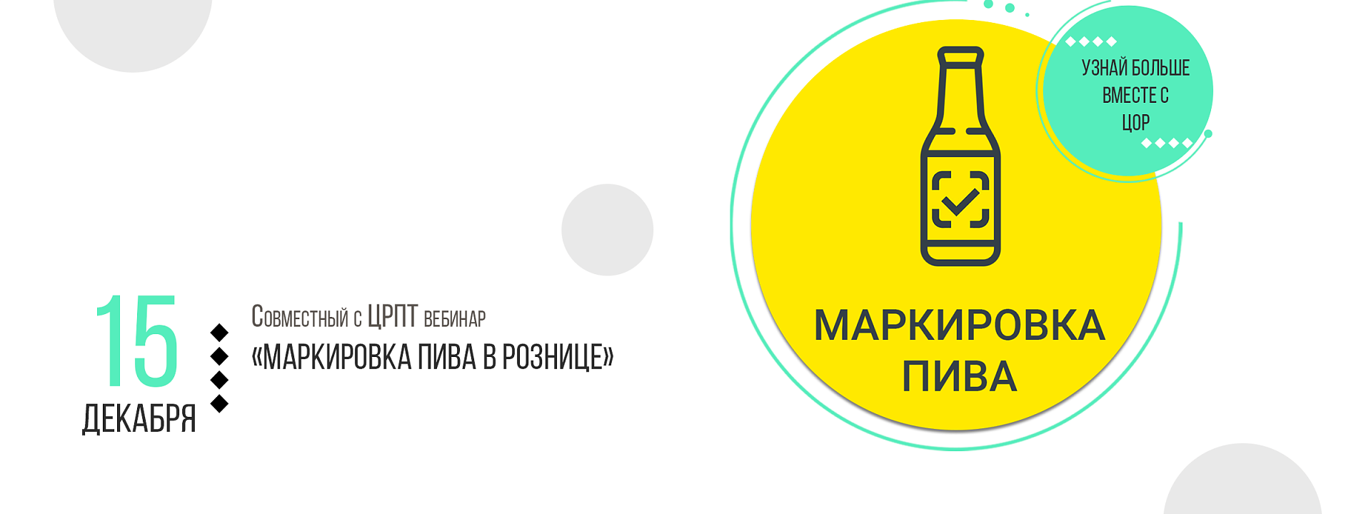 15 декабря в 10:00 по Москве на площадке «Честного знака» состоится совместный с ЦРПТ вебинар «Маркировка пива в рознице»!